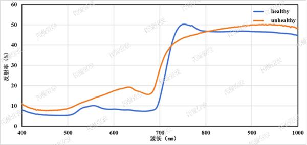 7. 病蟲害分析:可適用于植物病蟲害試驗(yàn),進(jìn)行病斑部分和健康部分光譜反射曲線進(jìn)行對(duì)比,通過(guò)對(duì)變化趨勢(shì)的研究可以對(duì)病害發(fā)生部分和嚴(yán)重程度進(jìn)行分析;