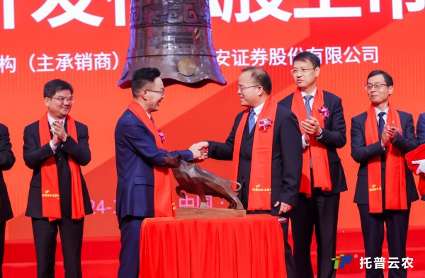 2024年10月17日,隨著深圳證券交易所儀式大廳的鐘聲響起,浙江托普云農(nóng)科技股份有限公司(股票簡(jiǎn)稱:托普云農(nóng),股票代碼:301556)正式在深交所創(chuàng)業(yè)板鳴鐘上市!